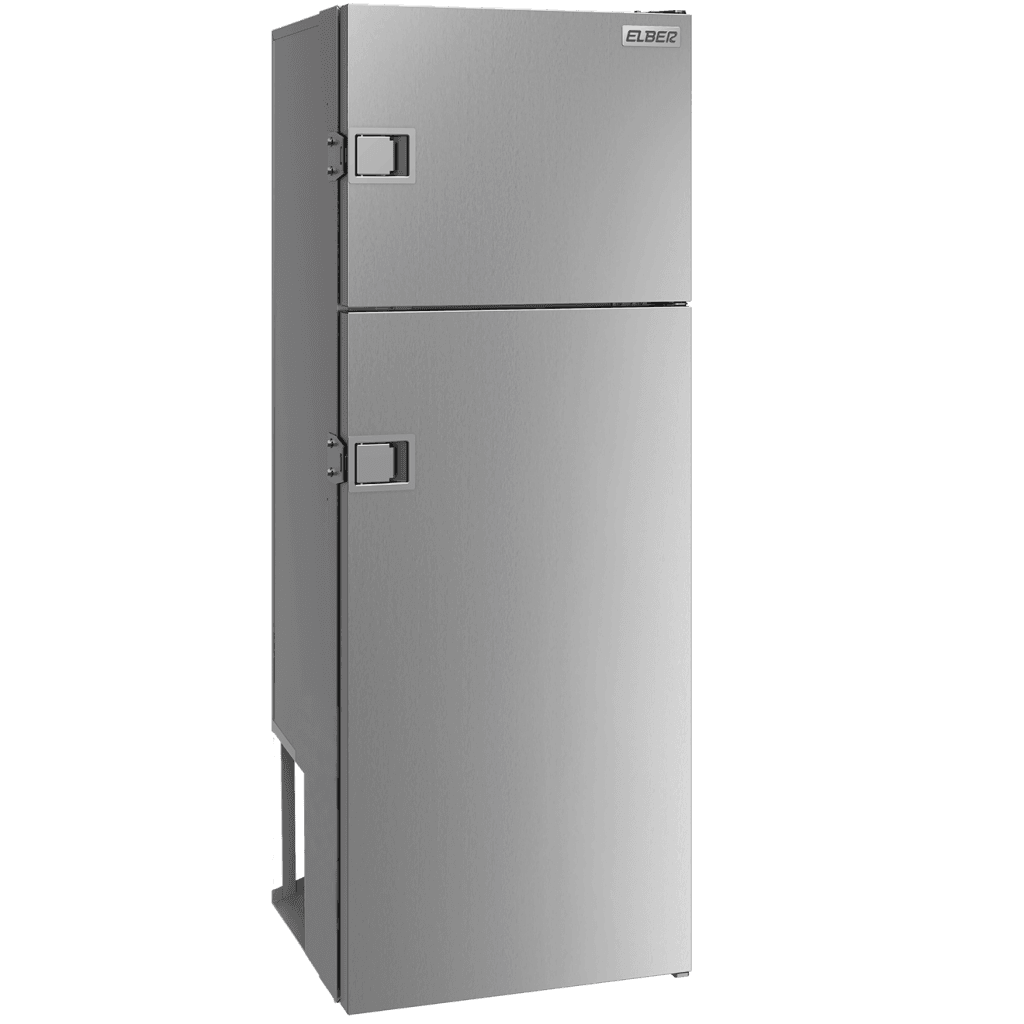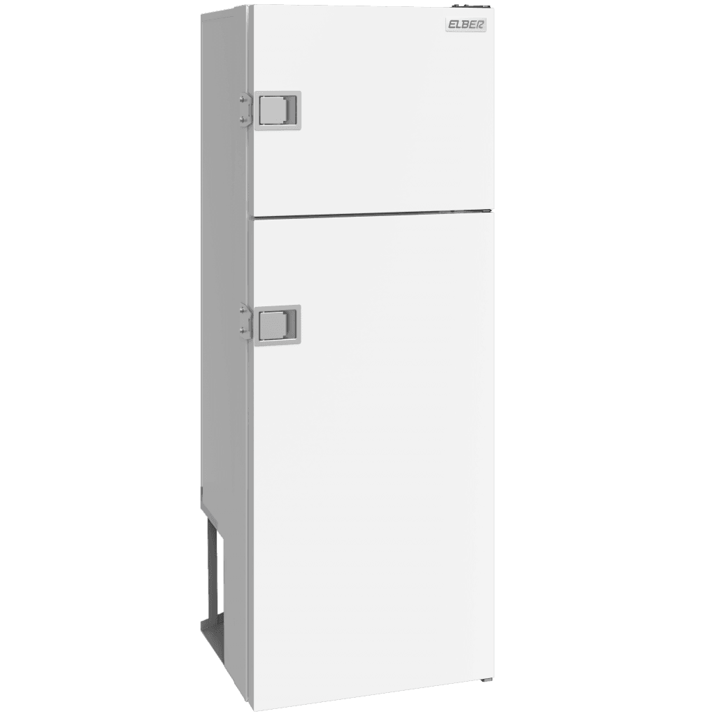 Tipo Biplex Dimensões Externas (cm) A: 125,5 L: 45,6 P: 49,5 Cor Branco, Inox Peso (Kg) 50 Tensão 12V/24V Unidade Compressora Compressor Elber – Acoplado Gás Refrigerante R134a ecológico Garantia 12 meses Volume Total (L) 113.6 Volume do Refrigerador (L) 77.4 Volume do Congelador (L) 36.2 Temperatura ajustável do Refrigerador (ºC) +2°C a +8°C Temperatura ajustável do Congelador (ºC) -2°C a -12°C Laterais Gabinete Externo Chapa Galvanizada ou Alumínio com Pintura PU Branca ou Aço Inox Porta Chapa Galvanizada ou Alumínio com Pintura PU Branca ou Aço Inox Gabinete Interno Congelador: Aço Inox Refrigerador: plástico branco Prateleiras 04 alumínio Potência 67W Consumo médio após gelada 24VCC (A/h) 5,6 Isolamento Térmico – PU injetado expandido de alta densidade isento de CFC (mm) 50 Características