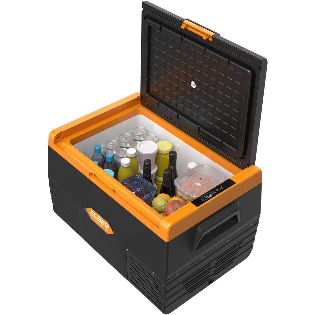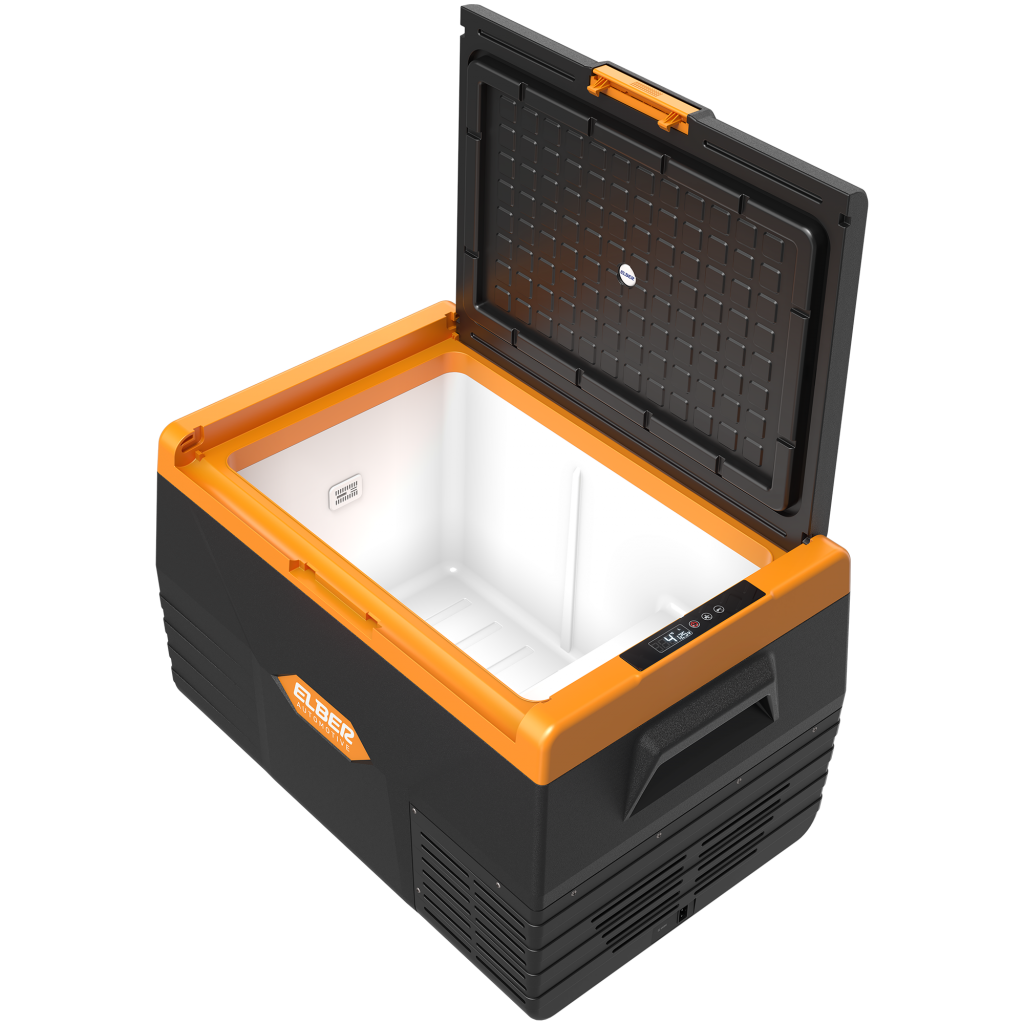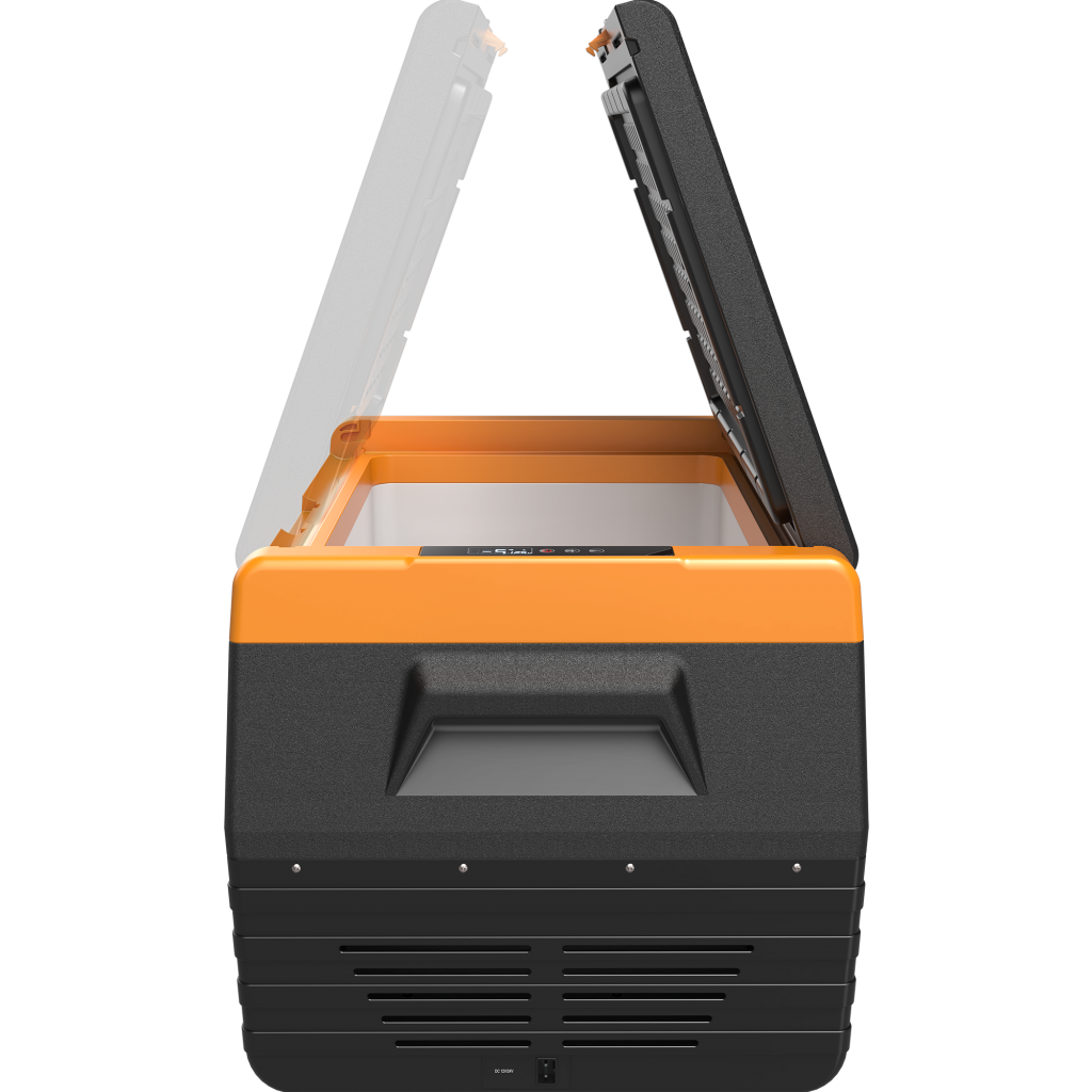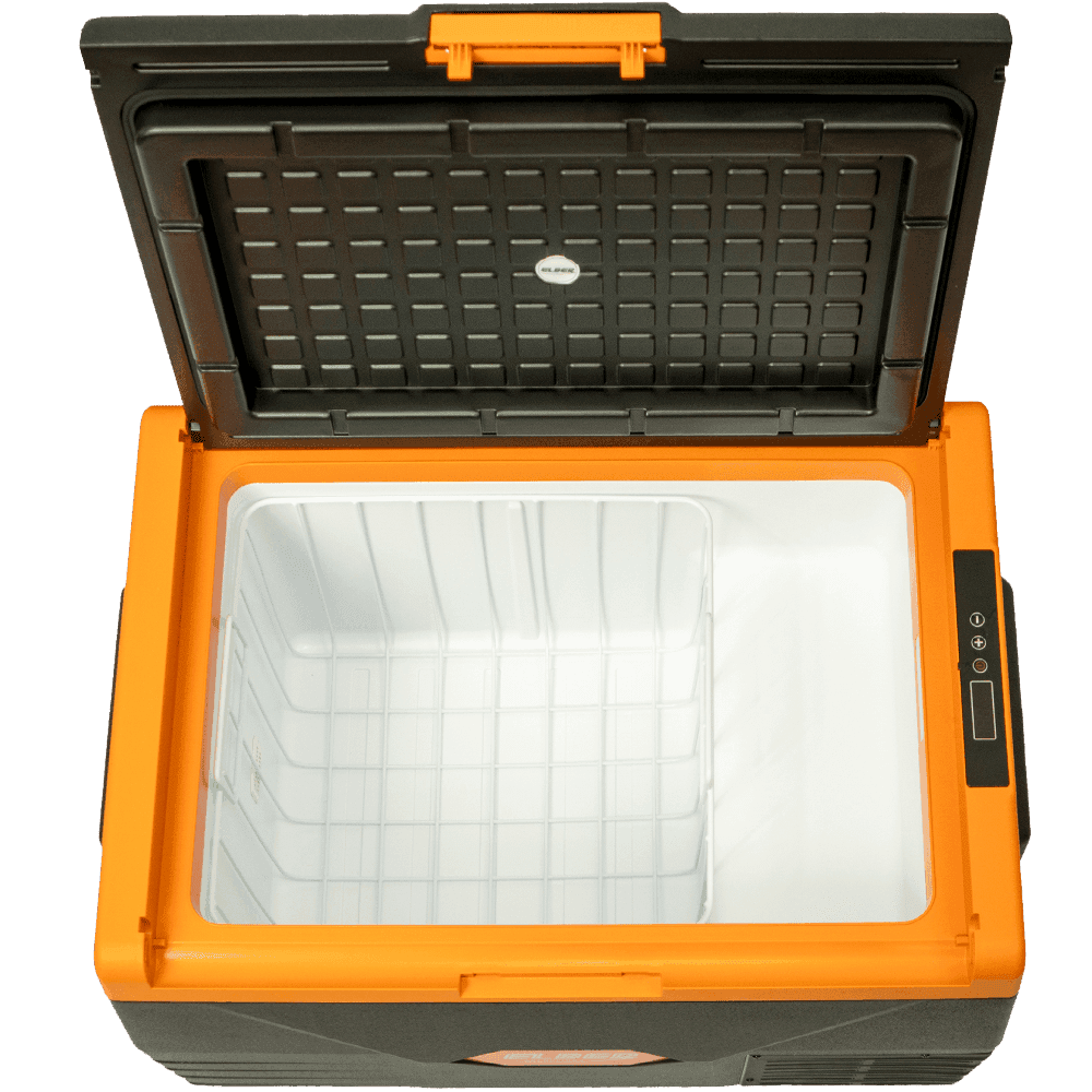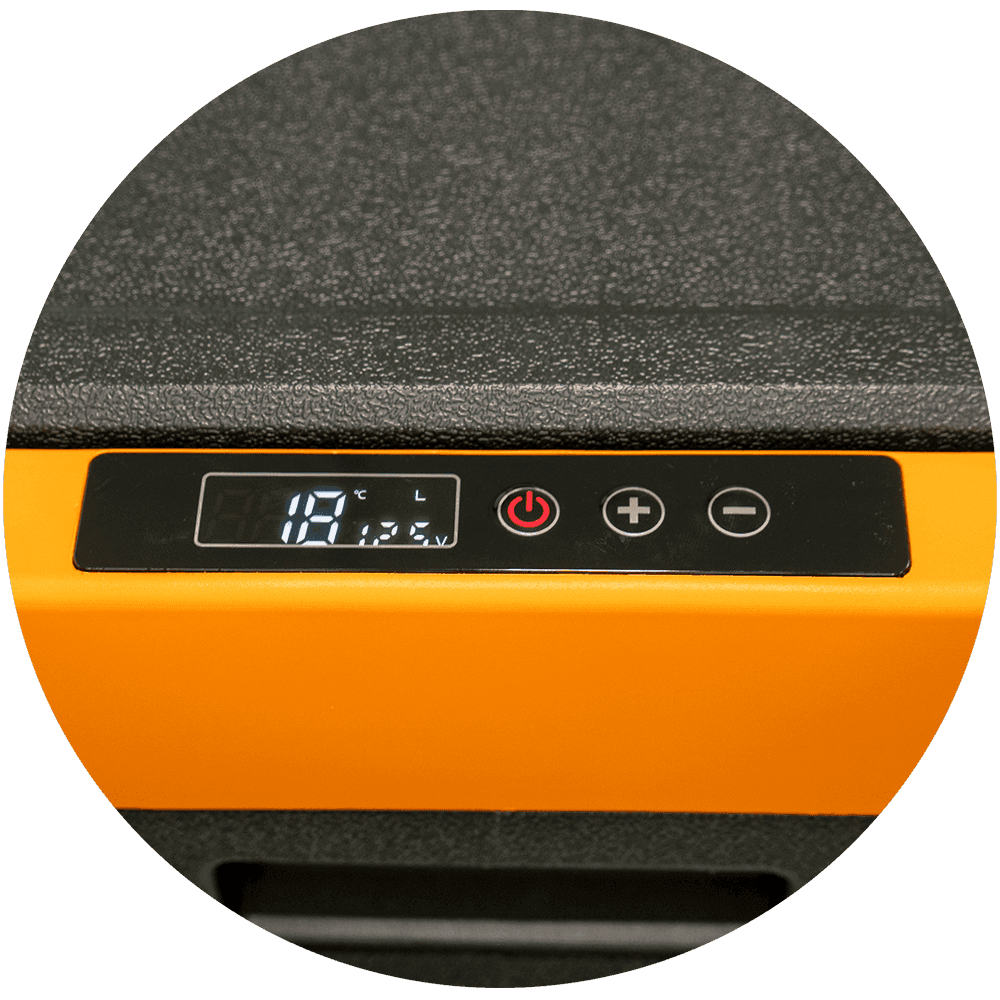 Tipo Portátil Dimensões Externas (cm) L: 69 x P: 48 x A: 43.6 cm Cor Preto com Laranja Peso (Kg) 16 Tensão 12V/24V (opcional: fonte 110/220V) Unidade Compressora Compressor Hermético – Acoplado Gás Refrigerante R134a ecológico Garantia 24 meses Volume Total (L) 50 Temperatura ajustável do Refrigerador (ºC) -18 a +10°C Laterais Gabinete Externo Plástico Porta Plástico Gabinete Interno Plástico Potência 60W Consumo médio após gelada 12VCC (A/h) Eco: 3.5 | Máx: 7 Consumo médio após gelada 24VCC (A/h) Eco: 1.75 | Máx: 3.5 Características