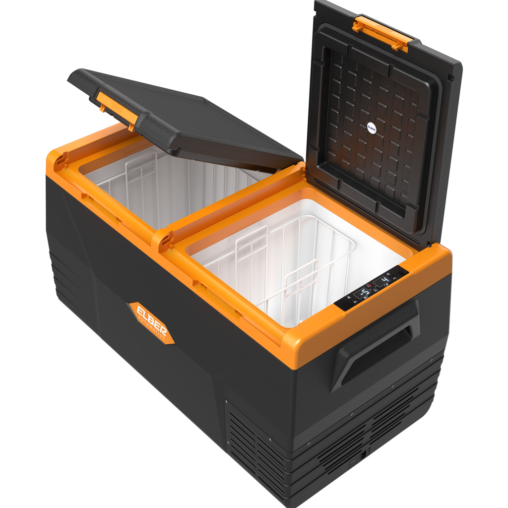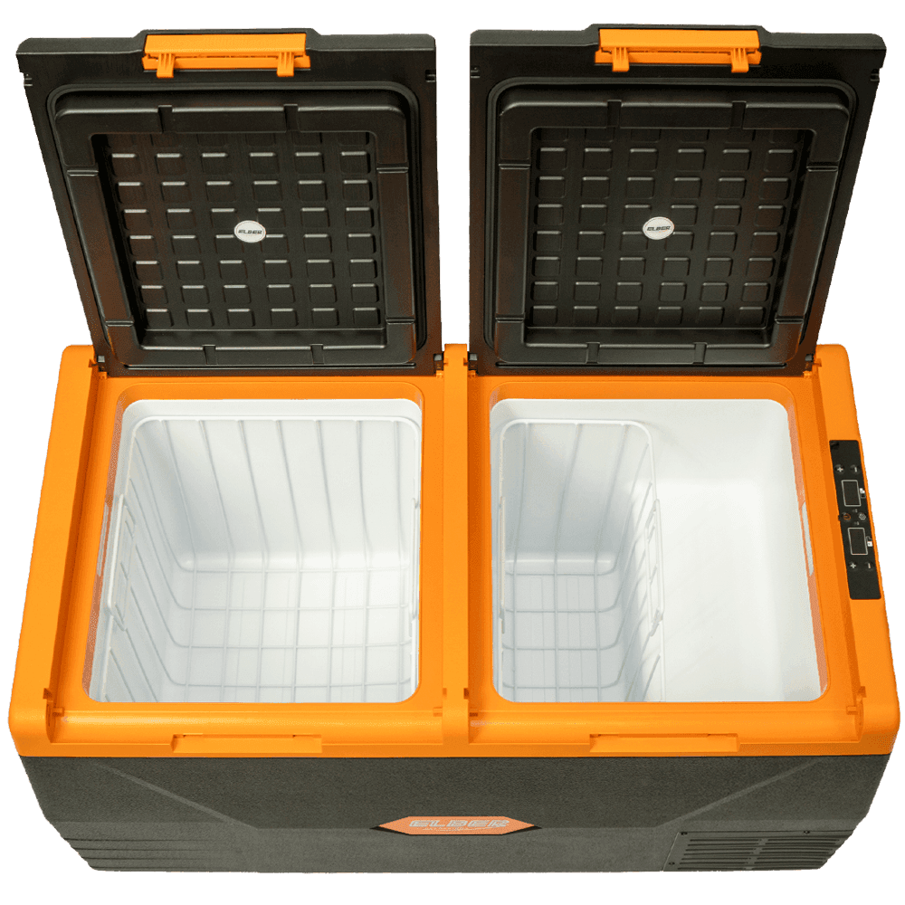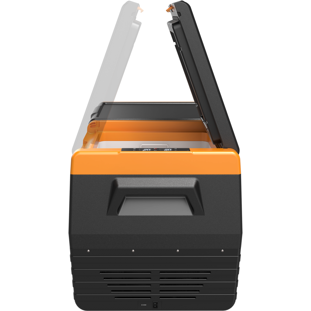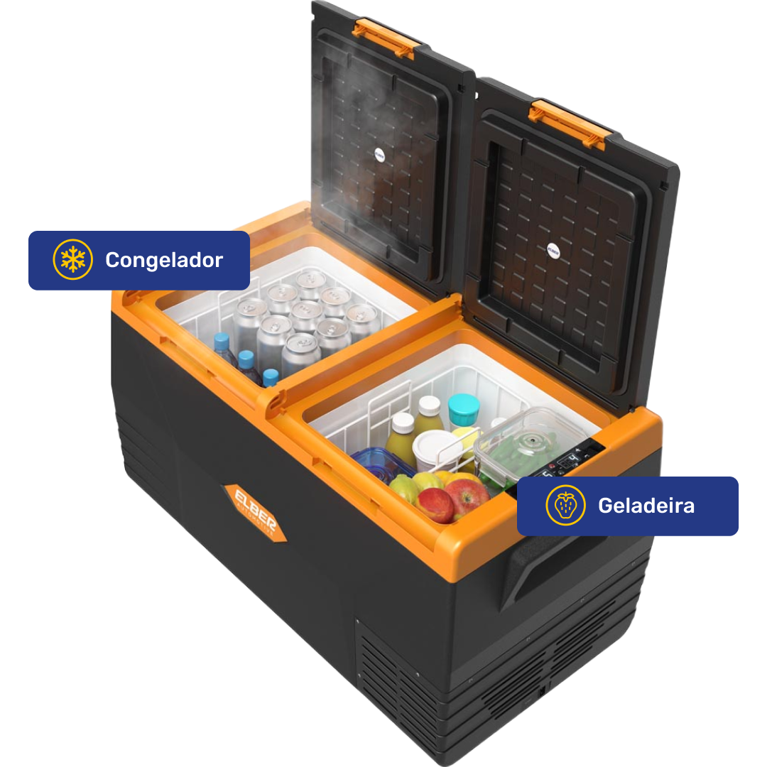 Tipo Portátil Dimensões Externas (cm) L: 88 x P: 48 x A: 47 cm Cor Preto com Laranja Peso (Kg) 22,5 Tensão 12V/24V (opcional: fonte 110/220V) Unidade Compressora Compressor Hermético – Acoplado Gás Refrigerante R134a ecológico Garantia 24 meses Volume Total (L) 75 Temperatura ajustável do Refrigerador (ºC) -18 a +10°C Laterais Gabinete Externo Plástico Porta Plástico Gabinete Interno Plástico Potência 80W Consumo médio após gelada 12VCC (A/h) Eco: 3.5 | Máx: 7 Consumo médio após gelada 24VCC (A/h) Eco: 1.75 | Máx: 3.5 Características