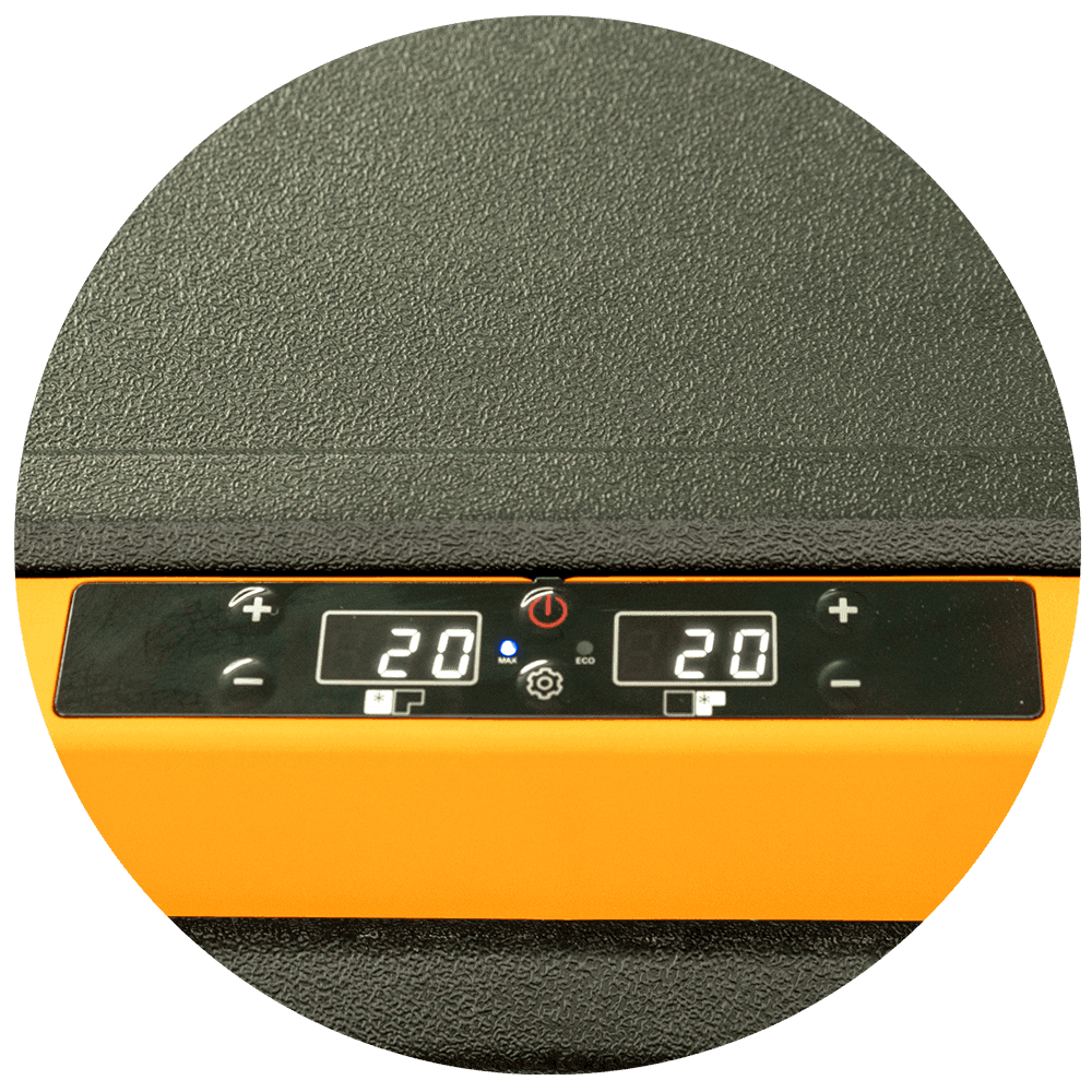 Temperaturas ajustáveis independentemente em cada ambiente, através do painel digital duplo, garantindo simultaneamente diferentes níveis de refrigeração e congelamento. Além disso, possui modo eco e máx.