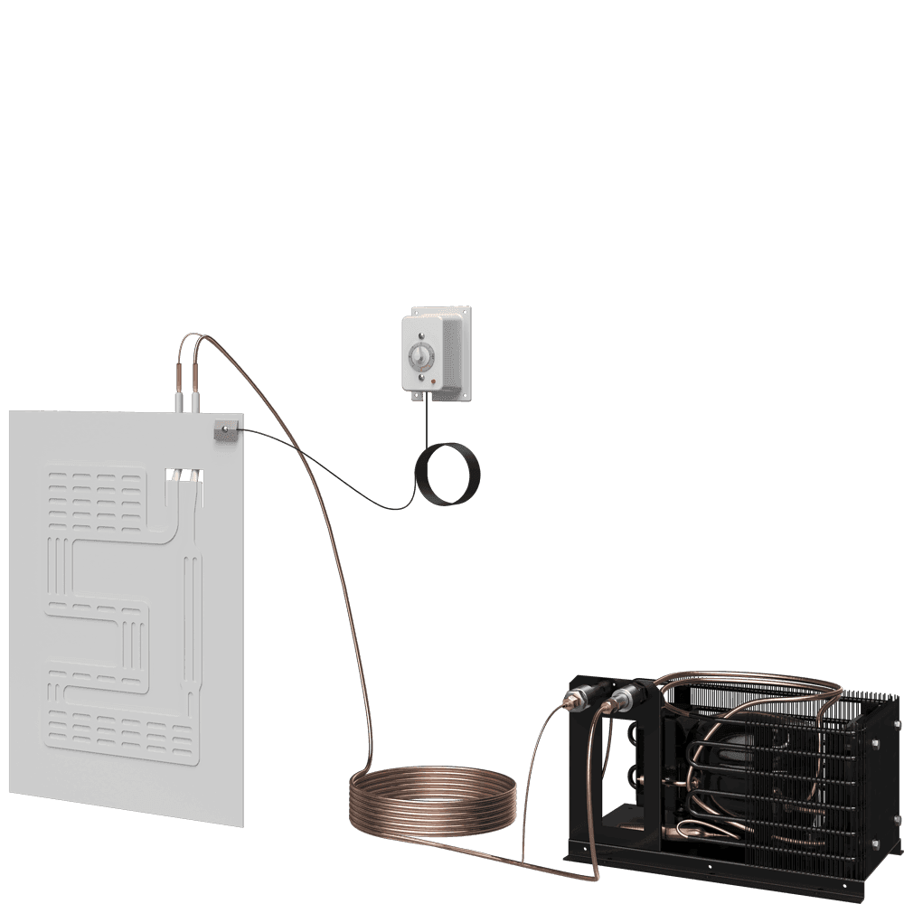 Para kits com 1 placa evaporadora, o gabinete ou caixa térmica não pode ser maior que 120 litros.